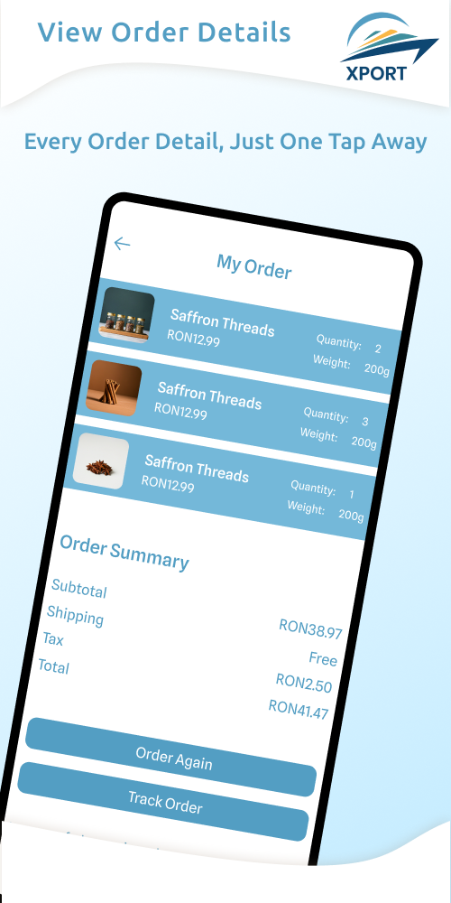 Gain full visibility into your delivery. Monitor status from "Order Received" and "Packed" to "On the Way" and "Delivered," complete with time-stamps.